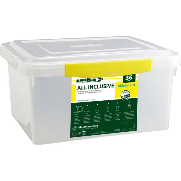 36-piece crockery complete set with transport box. All parts with anti-slip system.