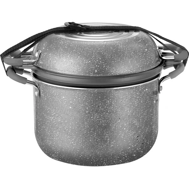 | Content / delivery size | 3 x pots (Ø 22, 18 and 14 cm), 1 x drip tray, 2 x pans (Ø 22 and 18 cm), 2 x lids (Ø 22 and 18 cm), can opener, tension strap |