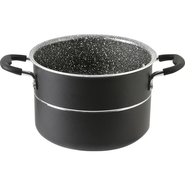 Pot set collection made of aluminum with high quality non-stick coating. Compactly stowable, modern design, hygienic, reliable, insensitive to thermal shocks and corrosion resistant.
