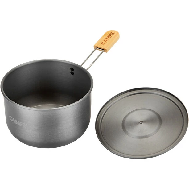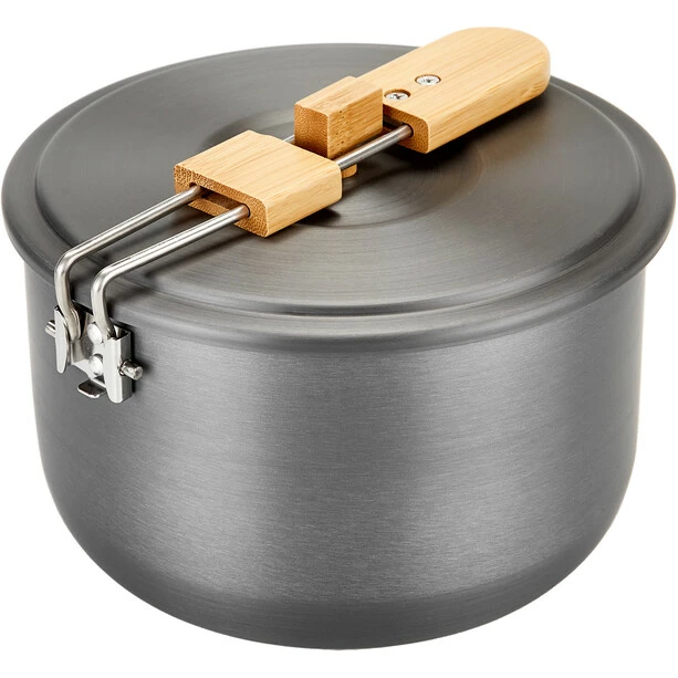 CAMPZ Aluminium Cooking Set with Bamboo Handles grey/brown(grey/brown)