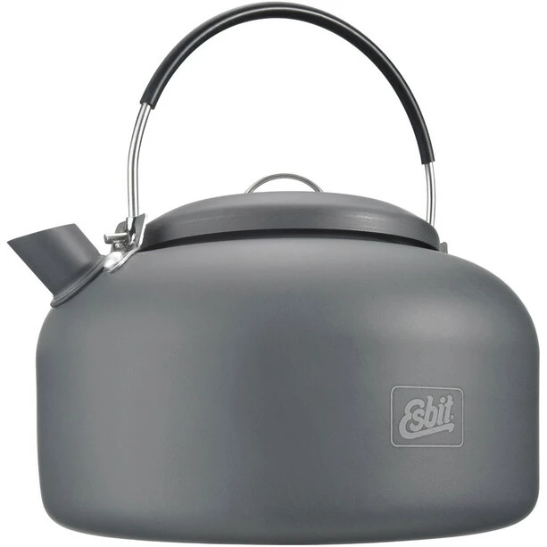 Light, hard anodised kettle with folding handle for the outdoor kitchen. 0,6 L Version fits perfectly in the Esbit spirit cook set.