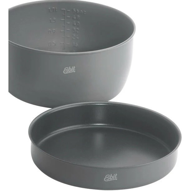 Cook set in light and extremely hard anodised aluminium. Both pans have measuring scales. The set comprises 2 chopping boards, lid with plastic grip, a 18,5 cm. pan with anti-stick coating and turned base for security. Tongs and pan cloth are included. In the `Non Stick´ version both pans have a multi-layer non-stick coating.