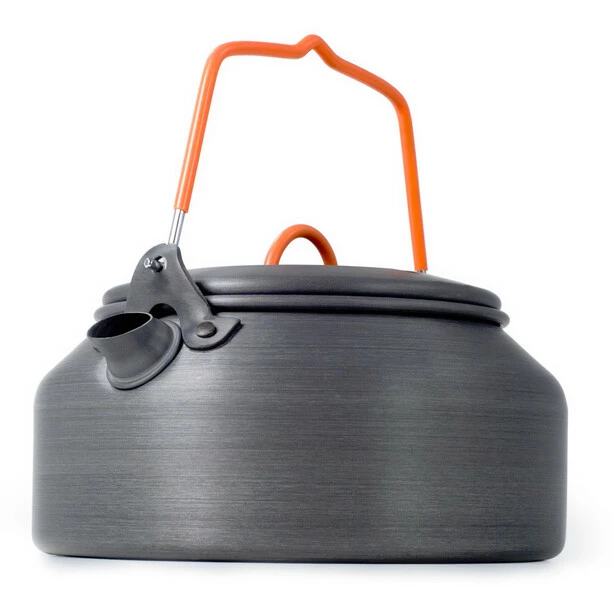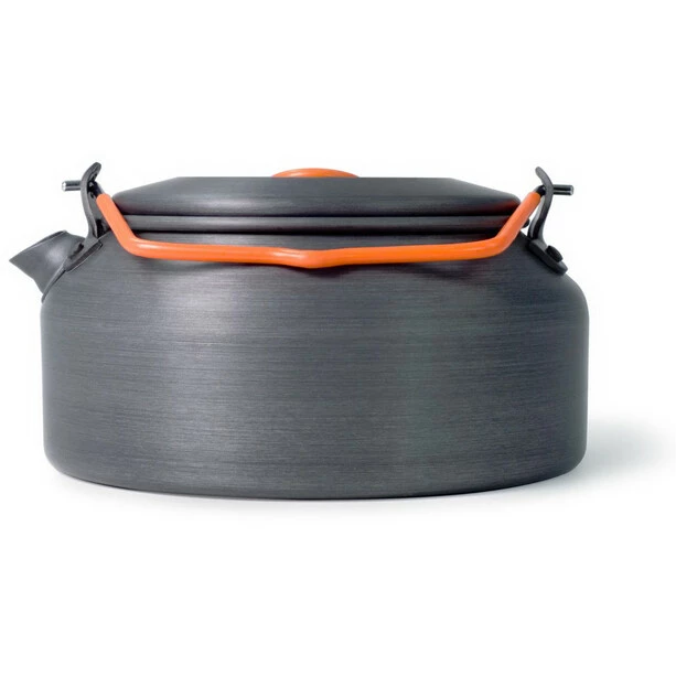 Hard-anodised aluminium kettle. A perfect complement for all cooking sets, but also incredibly practical solo. Large opening for filling and lockable handle with silicone coating (this keeps the handle cool).