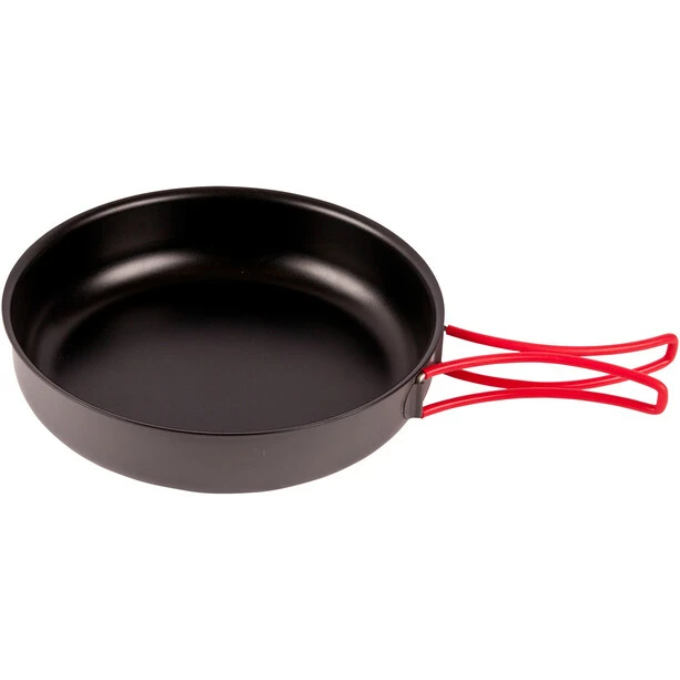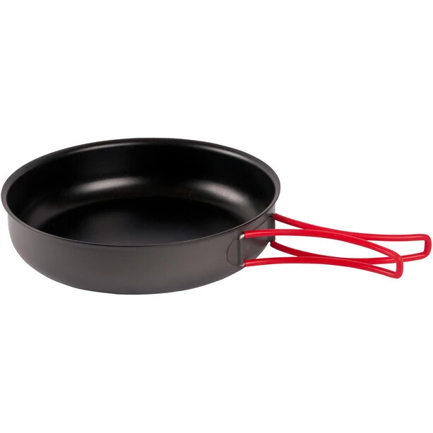 Very lightweight frying pan of hardened Aluminium with new, scratch resistant ceramic inner coating und silicon coated folding handles. With meshbag for transport.