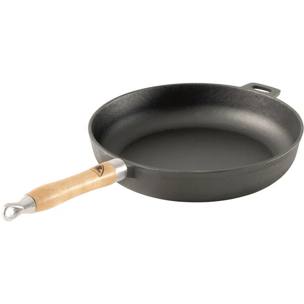 The Robens Tahoe pan is made of durable cast iron for optimum heat transfer and even cooking. The wooden handle has a suspension point. The pan is pre-treated and immediately ready for use.