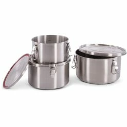 - Pots each have a lid with clip closure