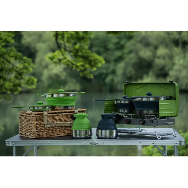 Save time and space with the Vango Cuisine cooking collection. This 1.5L Cuisine pot is perfect for your travel cooking needs. Made from silicone, it’s durable, easy to clean and foldable, making storage and transport very simple. Comes with a glass lid with integrated steam release. With the Cuisine pot you can cook on induction, electric and gas cookers while keeping the pack size small.