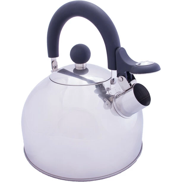 The Vango 2L Stainless Steel Kettle is a stylish kettle with whistling action and a removable lid. The folding heat-resistant handle is ideal when packing space is an issue.
